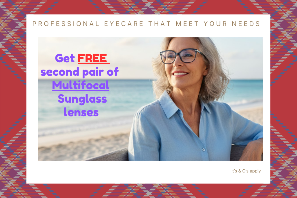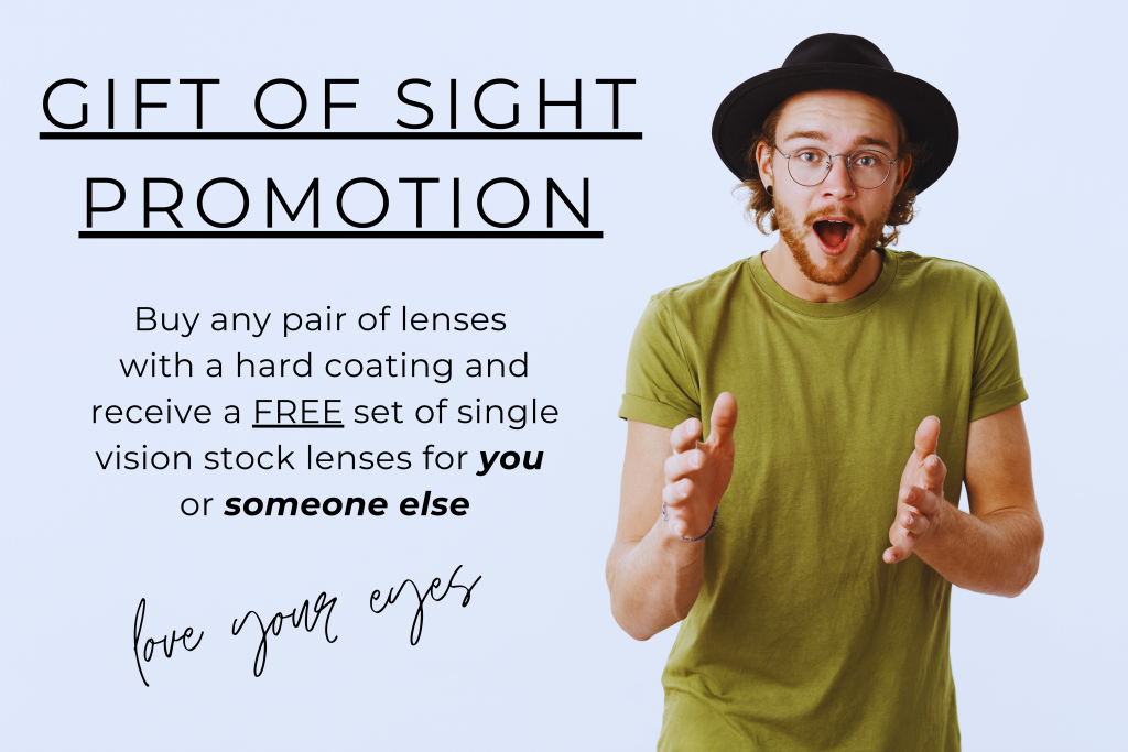 RECEIVE – A FREE SECOND PAIR OF SINGLE VISION STOCK LENSES FOR YOURSELF OR SOMEONE SPECIAL