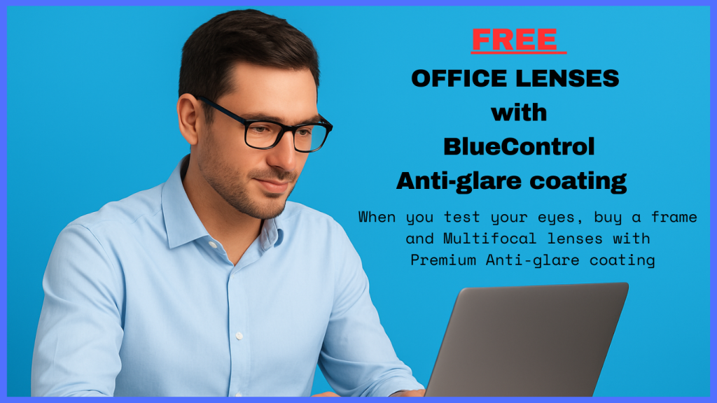 RECEIVE – A FREE SECOND PAIR OF OFFICE LENSES WITH BLUECONTROL ARC-COATING WORTH MORE THAN R 6000-00